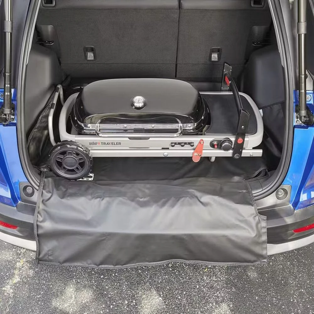 Protect your vehicleรs interior from grease and grime when youรre grilling on the go with the Weber Traveler grill. The cover is designed to fit snug around the Weber Traveler to contain grease and residue, allowing other items in your cargo space to remain clean during transport. The protector includes convenient storage for grilling tools and it folds flat and small for compact storage when not in use.